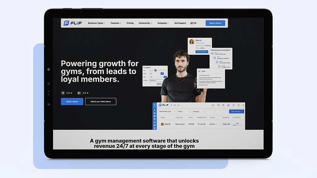 FLiiP is a Montreal-focused, all-in-one platform built to support multi-location gyms, boutique studios, and franchise-style fitness businesses. Canadian owners benefit from its bilingual (English/French) interface, staff and members management features that simplify the operations. It is especially suitable for gym owners looking to scale without operating disconnected tools.